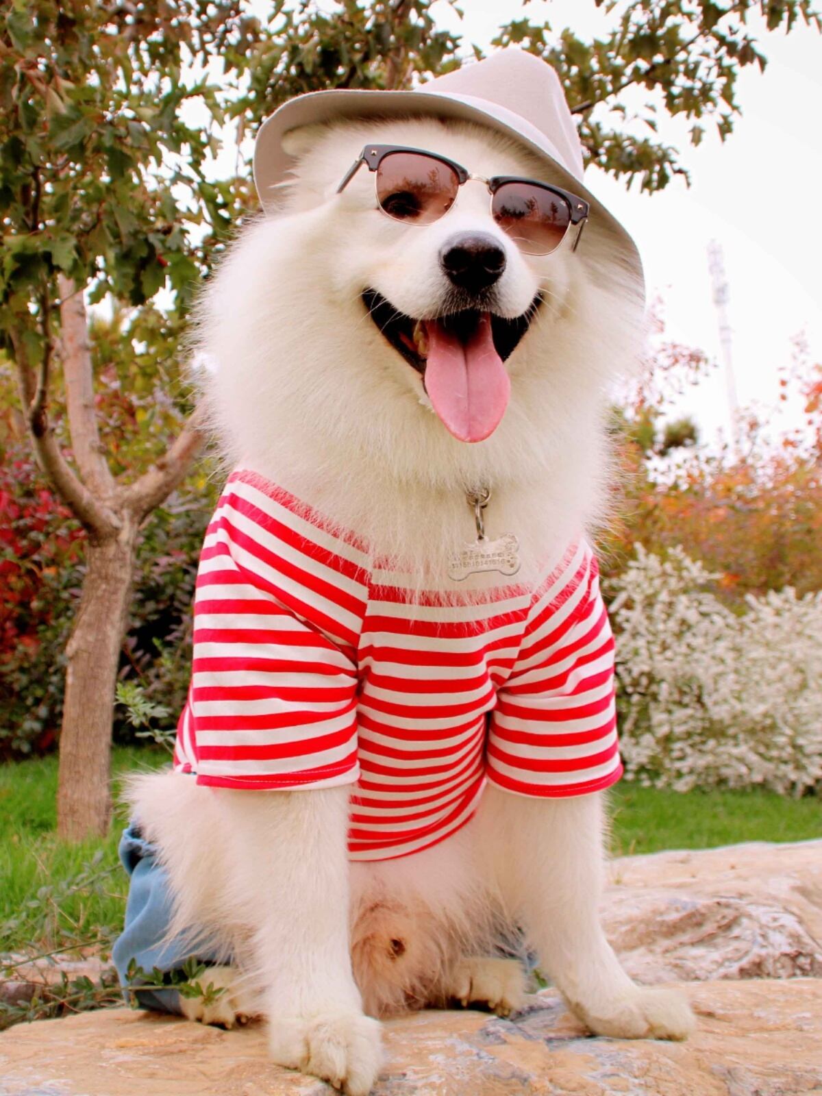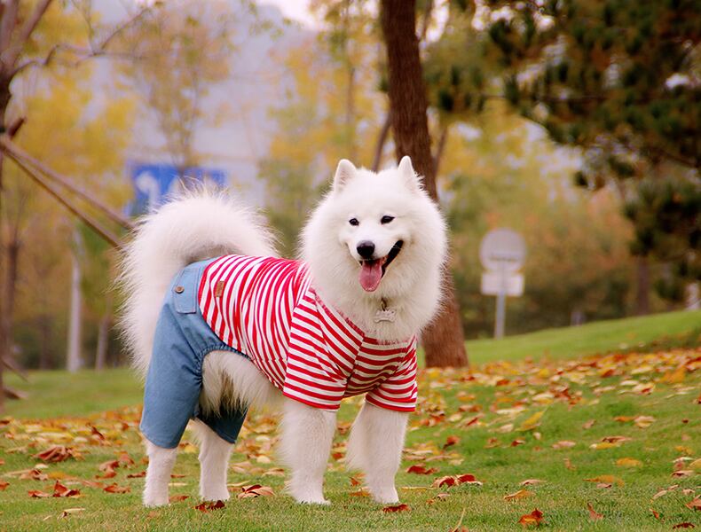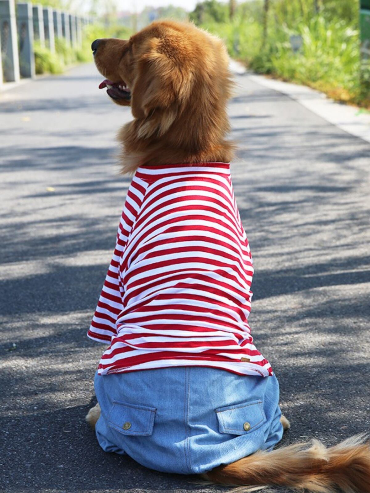 <2色展開>大型犬着用可!セットアップ風ボーダーロンパース0463