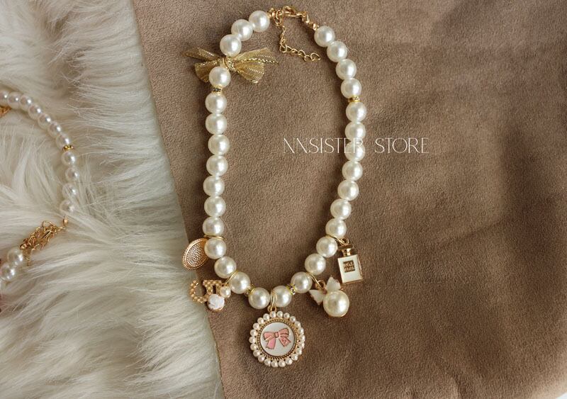 <3色展開>パールチャームネックレス0485
