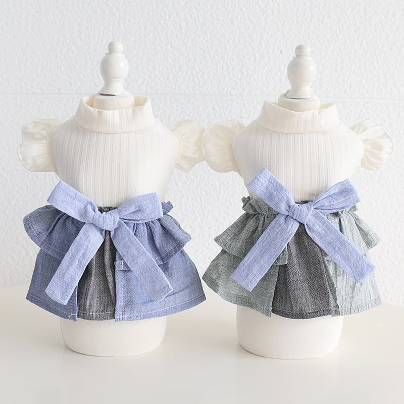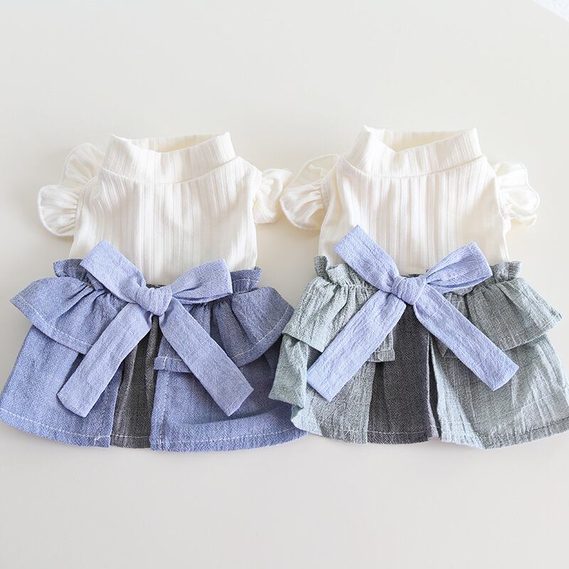 <2色展開>リボンドッキングデニム風ワンピース 0579